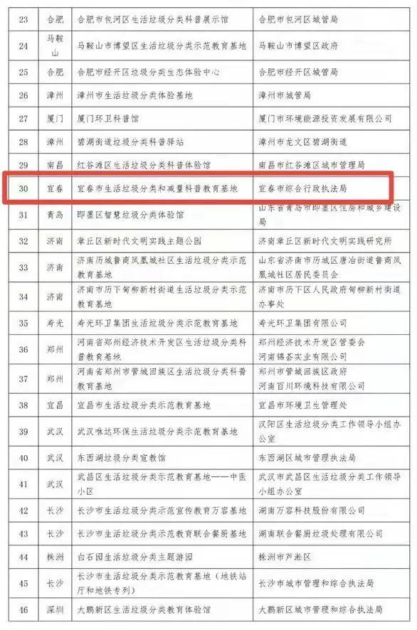 全國(guó)第一批共56家垃圾分類示范教育基地名單